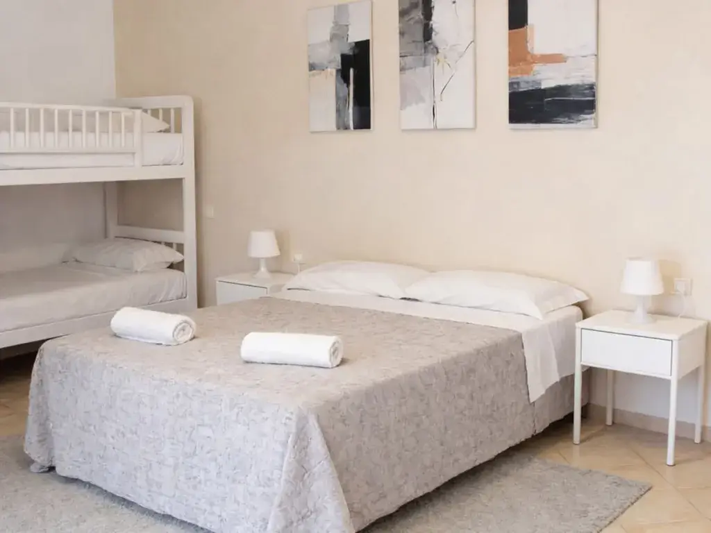 La struttura si affaccia su una lunga distesa di sabbia bianca e ghiaia fine, bagnata da acque limpide e tranquille, ideali per famiglie e per chi desidera una vacanza rilassante a contatto diretto con il mare. A disponizione 1 ombrellone e 2 lettini per camera.