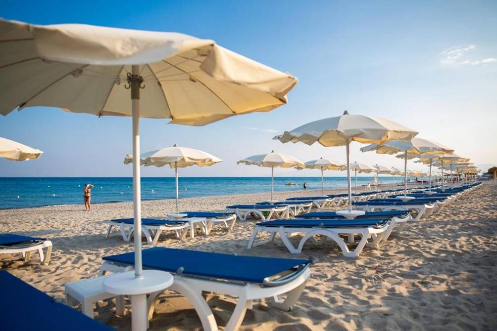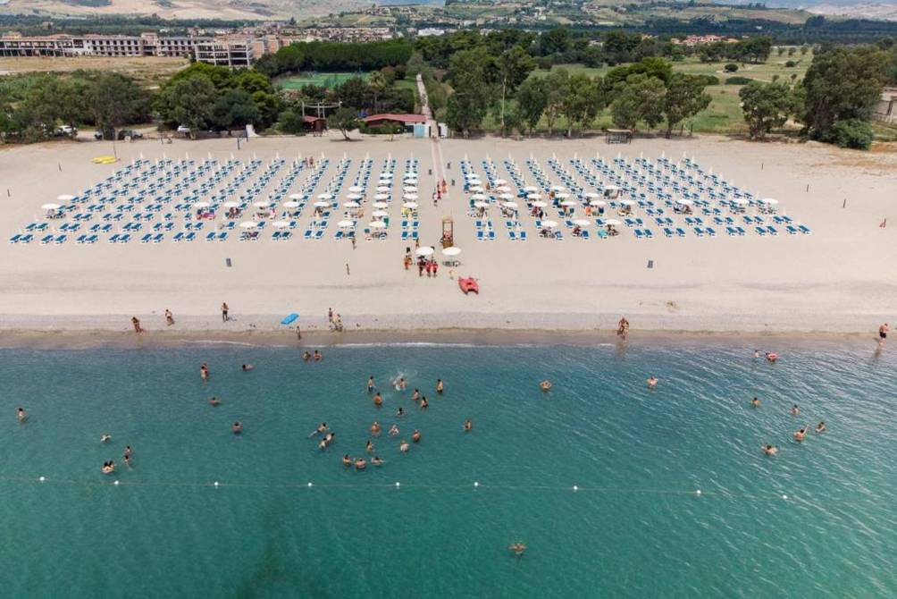 La lunga e ampia spiaggia di sabbia sottile dista circa 300 metri dal villaggio ed è bagnata da un mare cristallino. È raggiungibile attraverso un gradevole percorso pedonale immerso nel verde e nella vegetazione curata della struttura. La spiaggia riservata, dispone di un bar, di un campo da beach volley e uno da beach tennis.