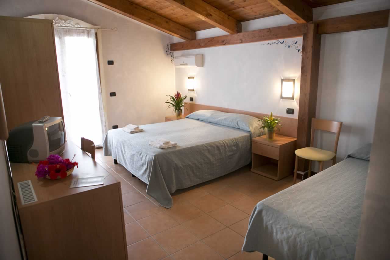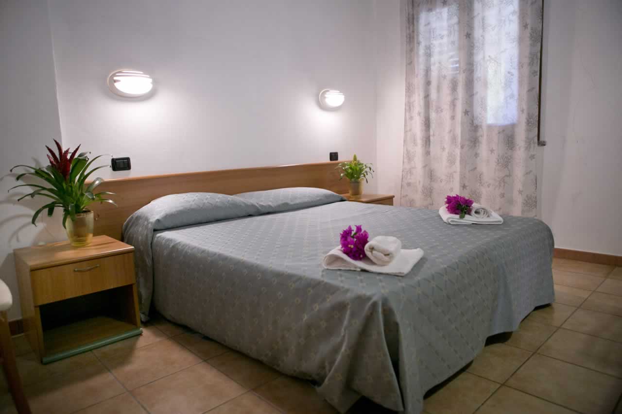 Formula hotel - con trattamento di pensione completa o mezza pensione; le camere sono ubicate tutte al piano terra arredate in modo semplice e funzionale, sono dotate di ingresso indipendente, servizi privati, aria condizionata tv lcd, asciugacapelli e piccolo patio; si suddividono in camere matrimoniali, triple e Apparthotel (per 4/5 persone) composti da: camera matrimoniale e letto singolo, soggiorno con angolo cottura attrezzato, divano letto o letto a castello. Non è possibile aggiungere la culla, in camera Standard matrimoniali o triple.
