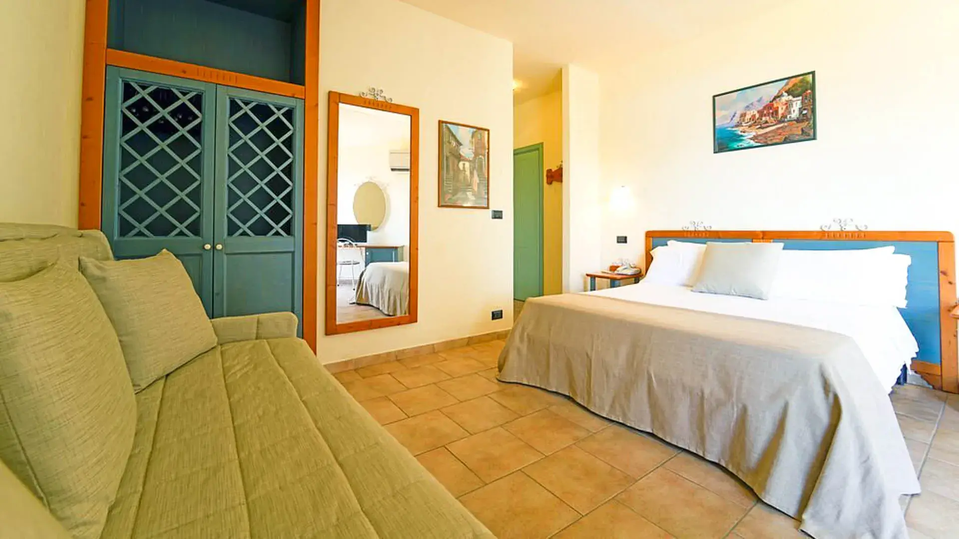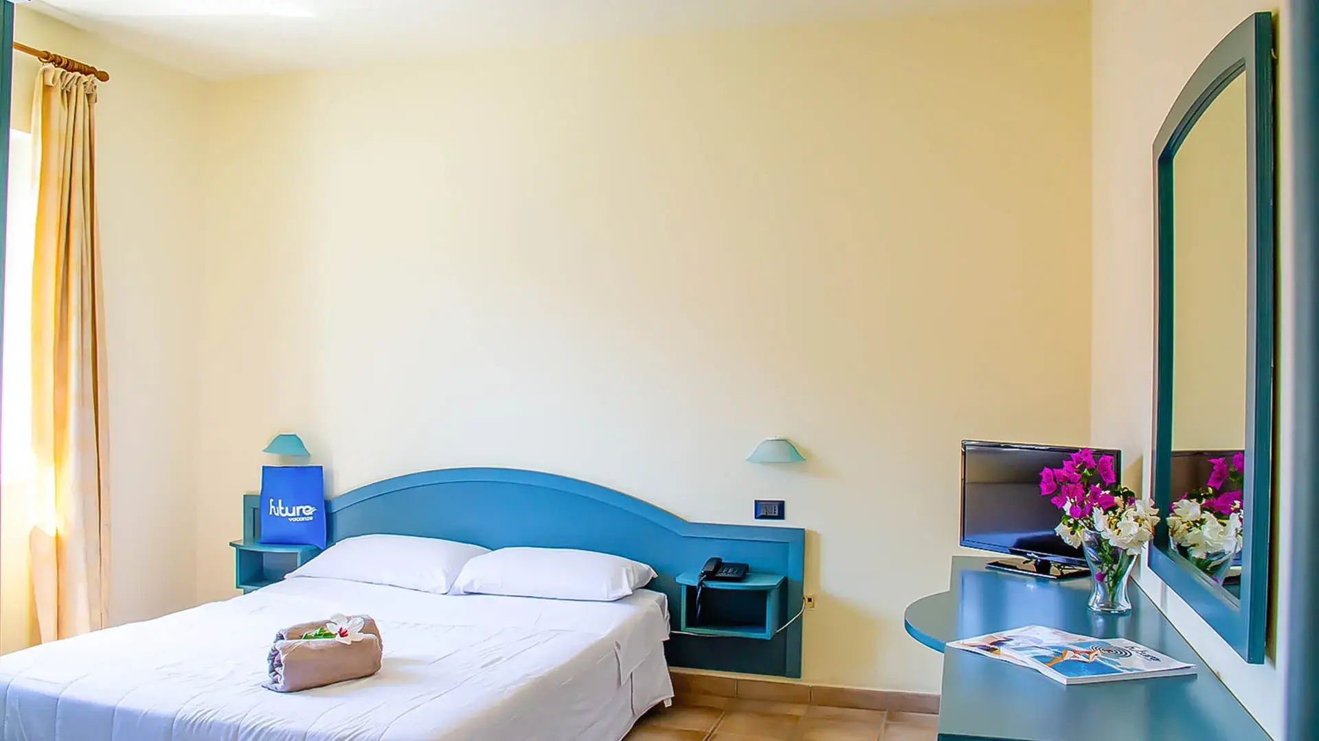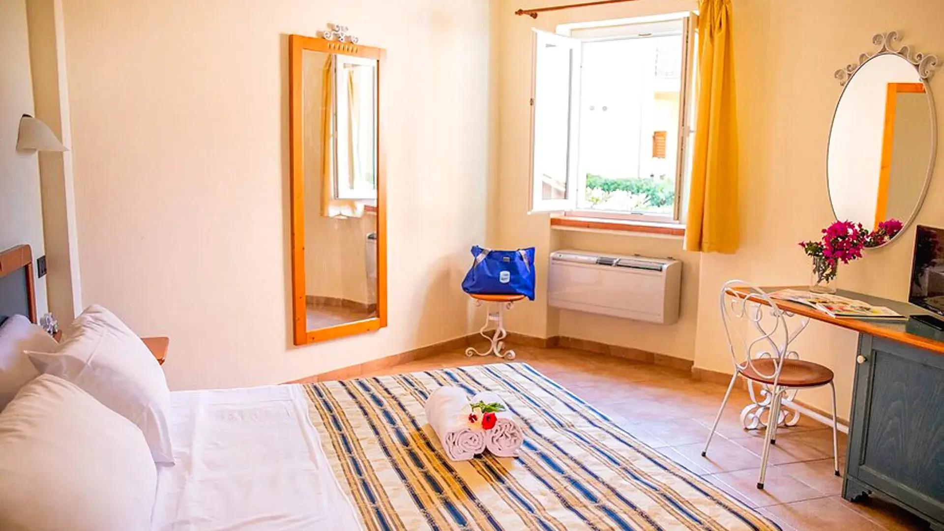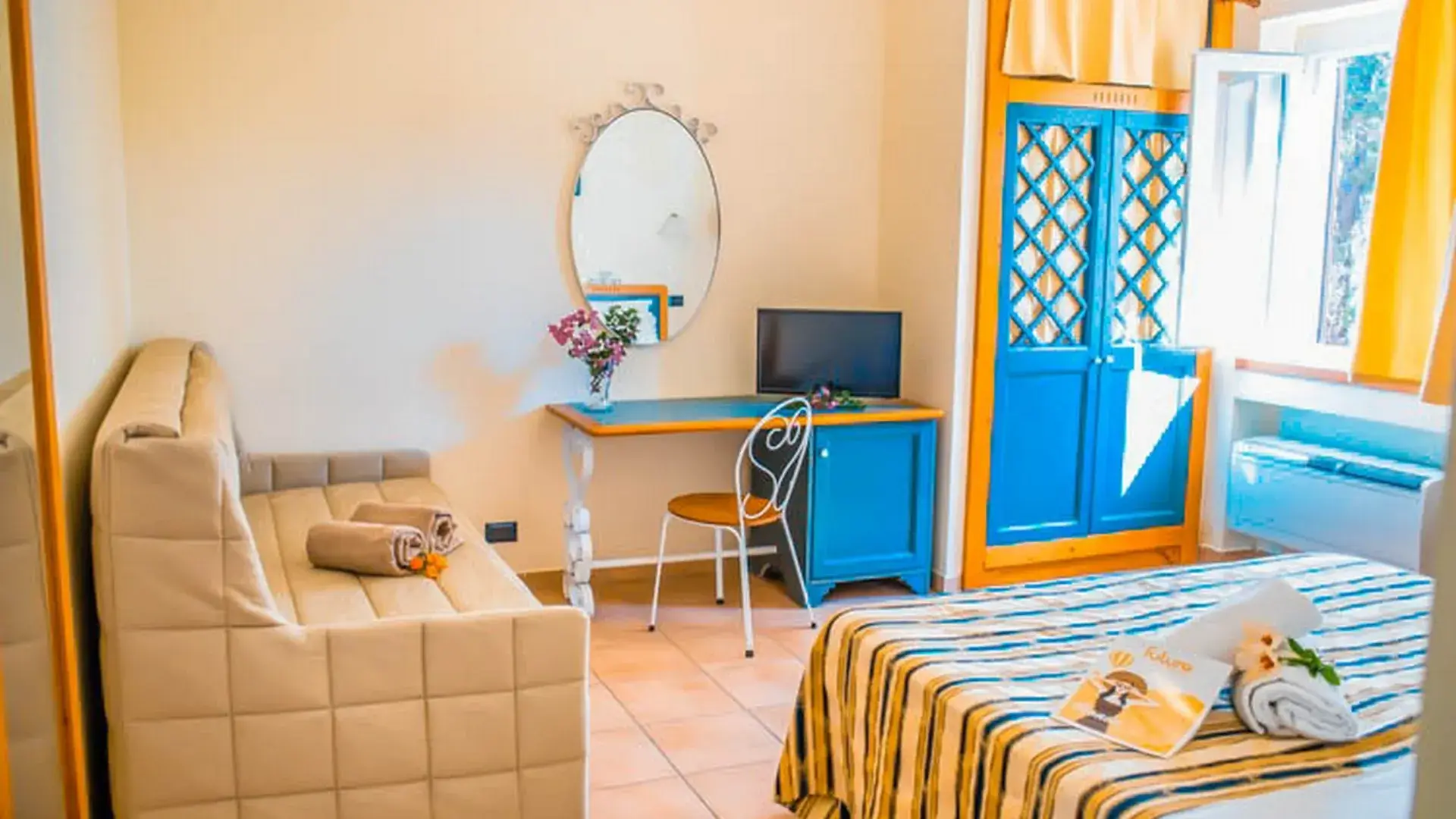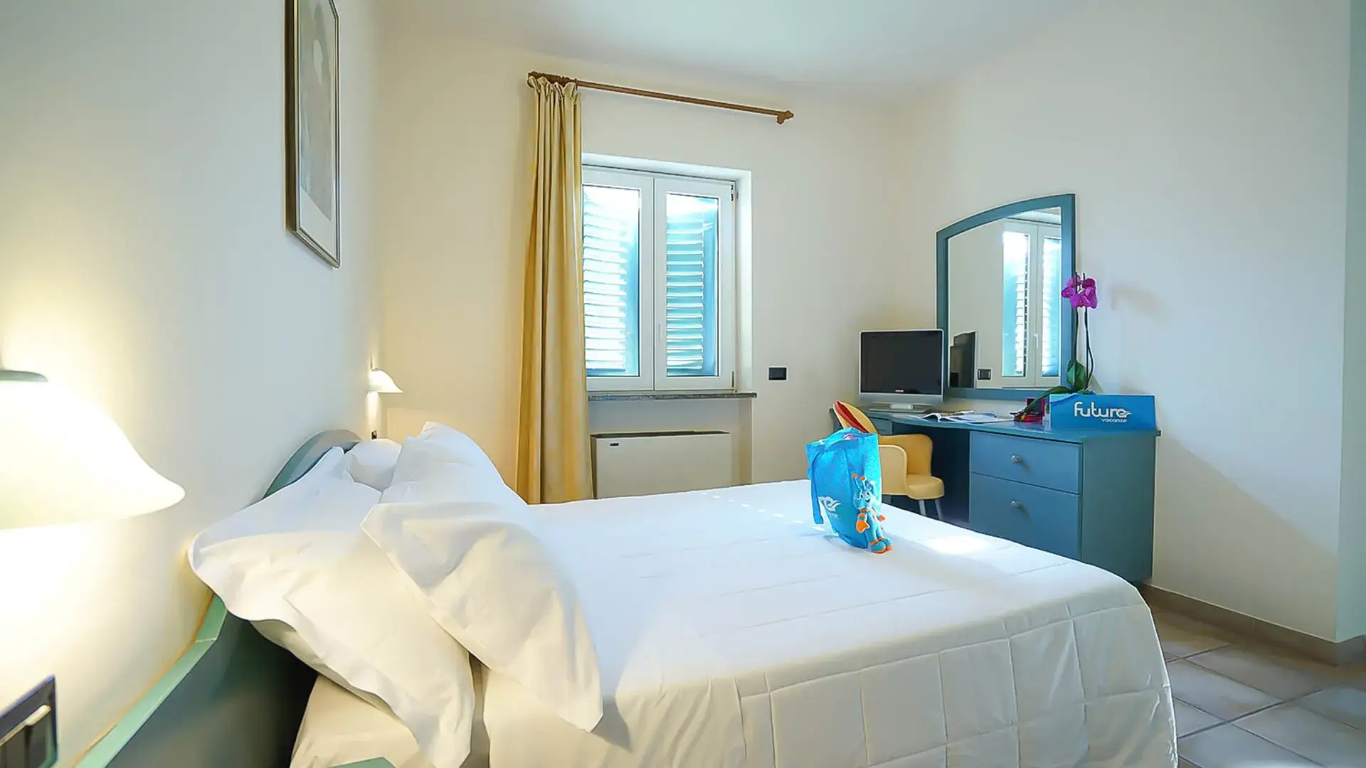 Le unità abitative, al piano terra o primo piano, sono tutte dotate di telefono, tv, aria condizionata, frigobar, cassetta di sicurezza, servizi con doccia e asciugacapelli; alcune con angolo cottura (attivazione su richiesta con supplemento). Disponibili camere Standard doppie/matrimoniali con possibilità di 3° letto e 4° letto in divano letto a castello (lunghezza 1,80 mt), alcune con balcone; camere Family per 4/5 persone composte da 2 camere comunicanti con ingresso indipendente e doppi servizi, alcune con balcone; Bilo Family per 3/6 persone composti da camera matrimoniale e soggiorno con 2 divani letto singoli + 1 divano letto a castello; Trilo Family per 4/6 persone composti da soggiorno con 2 divani letto singoli, 2 camere matrimoniali e doppi servizi. Su richiesta sistemazioni per diversamente abili.