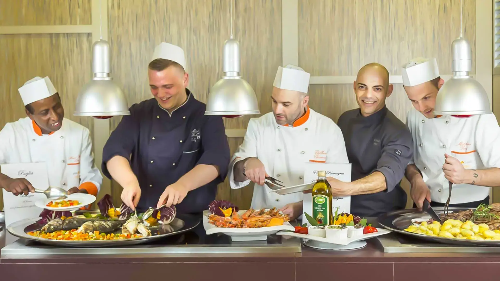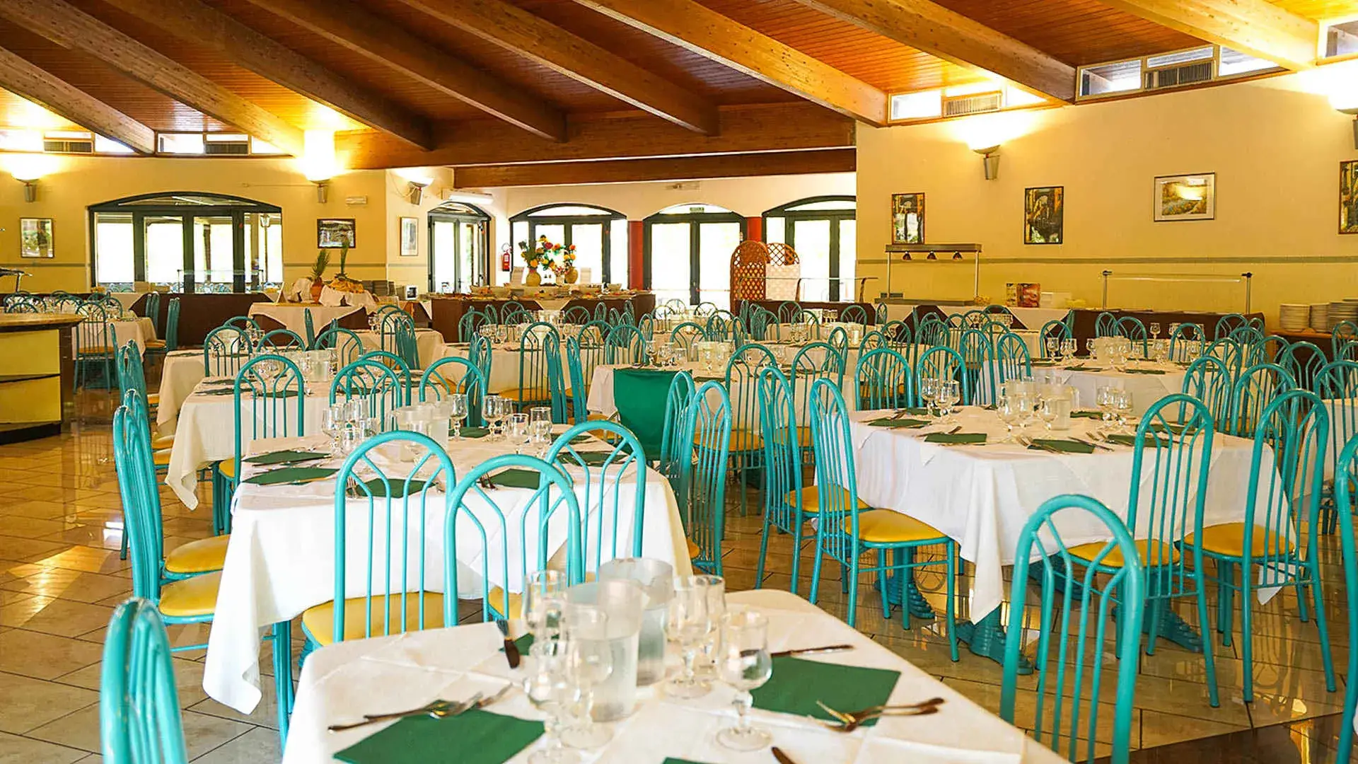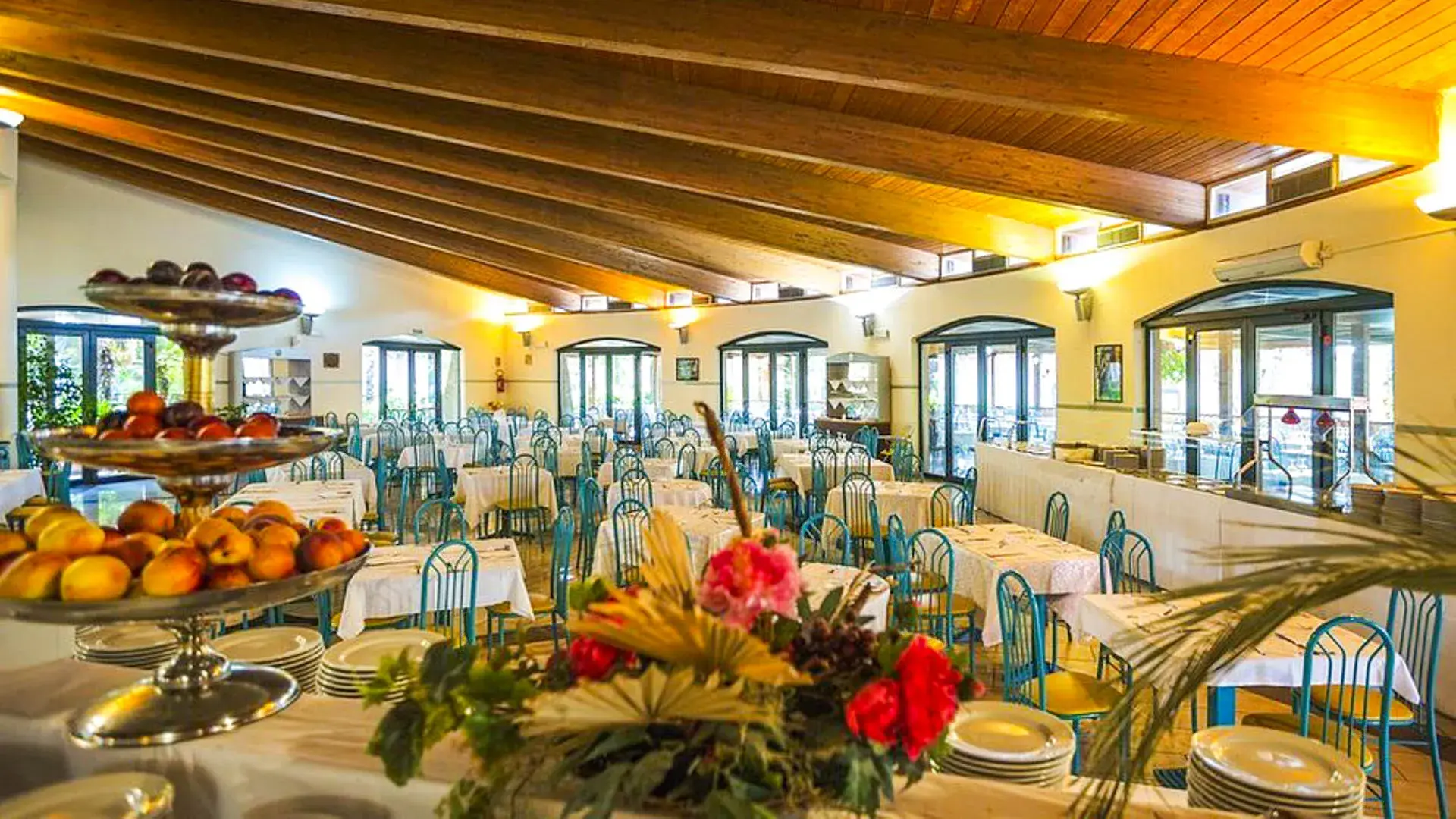 3 ristoranti di cui 2 centrali, con sale interne climatizzate o terrazza esterna, con pasti a buffet con cucina nazionale e piatti regionali, serate a tema, showcooking e griglieria; acqua mineralizzata in caraffa, vino della casa e soft drink inclusi ai pasti. Possibilità di cucina per celiaci con prodotti base privi di glutine e assistenza ai pasti per tutta la durata del soggiorno con personale di sala dedicato (non garantita assenza di contaminazione). Ristorante riservato per i piccoli ospiti, a pranzo e cena ad orari stabiliti, con assistenza e menu dedicato. Inoltre ristorante "Poseidon" nei pressi della spiaggia con menu light (apertura a discrezione della Direzione e secondo condizioni climatiche).