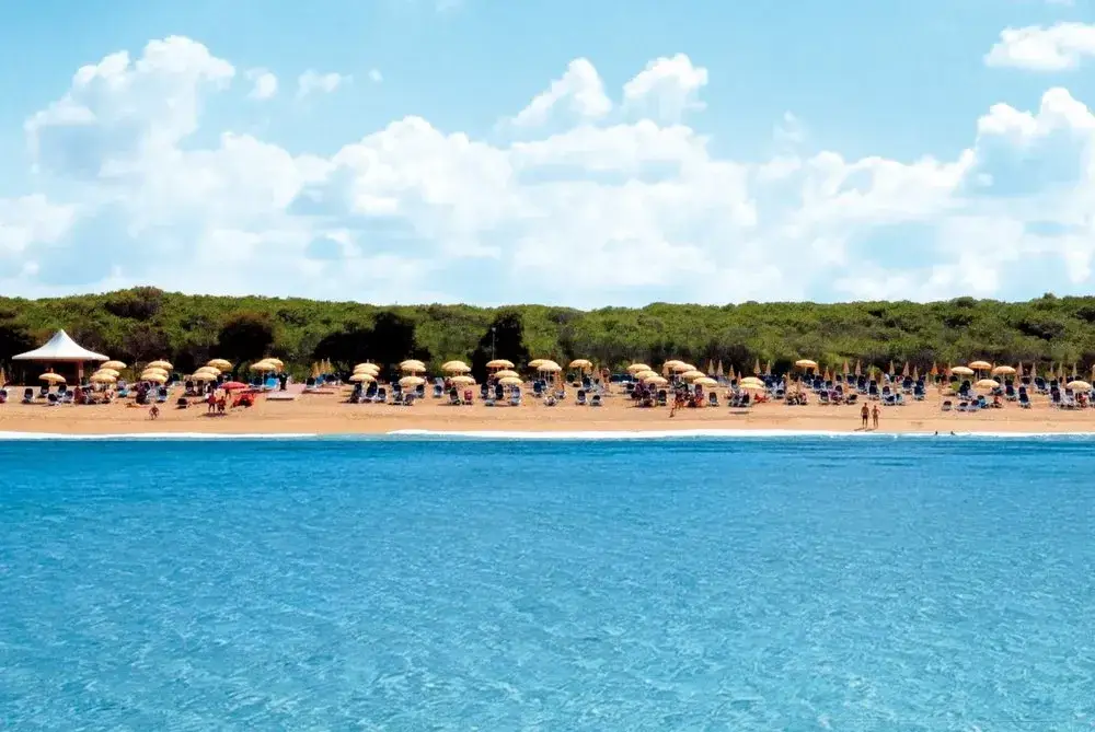 La spiaggia dista meno di 100 metri e si raggiunge con un percorso pedonale attrezzato attraverso la pineta. Spiaggia privata di sabbia finissima con ombrelloni, lettini, sdraio e docce. Accesso diretto fruibile anche per persone con disabilità.