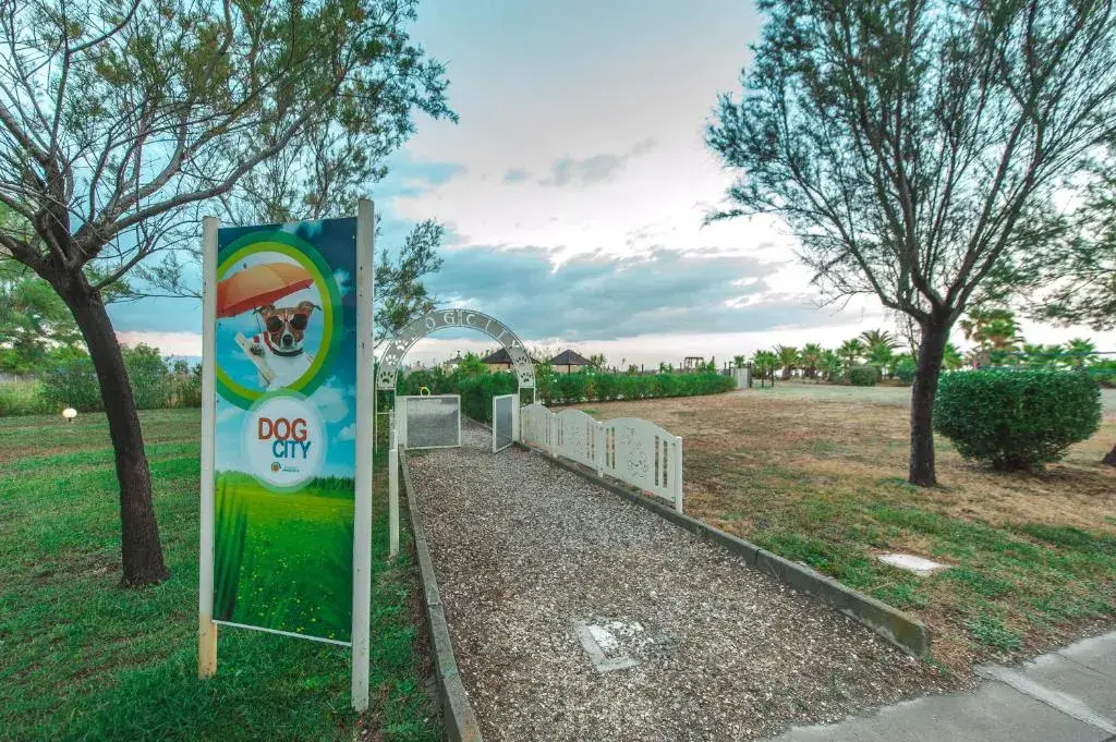Sono ammessi di piccola taglia escluso aree comuni (quali ristorante, piscina) per un massimo di 8 ogni settimana con supplemento per pulizia finale settimanale da saldarsi in loco pari ad euro 105. A disposizione degli ospiti a 4 zampe area dedicata ed attrezzata in spiaggia con possibilità di balneazione presso la spiaggia libera adiacente. All'interno del villaggio, parco attrezzato per la sgambatura. Obbligatorio guinzaglio e libretto sanitario.