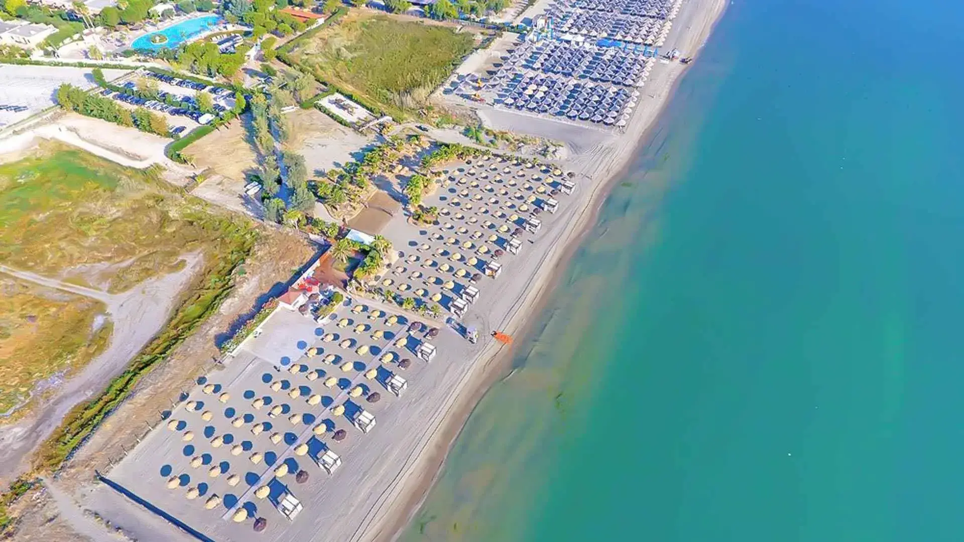 Il Fruit Village Manfredonia Emmanuele ha spiaggia con accesso diretto, ampia, di sabbia fine, privata e attrezzata, con bar, docce e servizi, raggiungibile a piedi attraverso vialetto interno. Servizio spiaggia incluso nella Tessera Club con un ombrellone, 1 sdraio ed 1 lettino per camera.