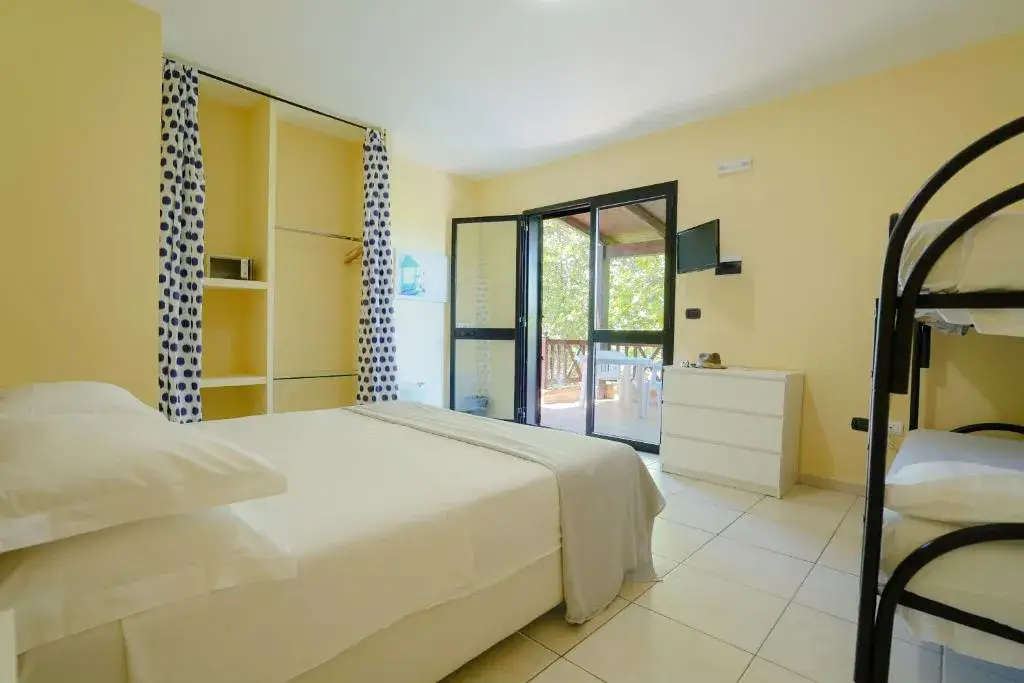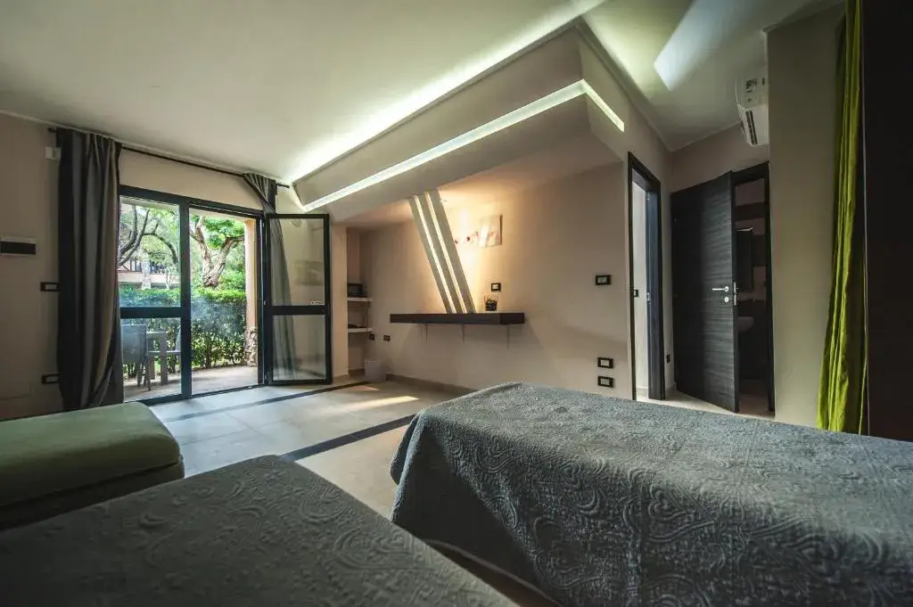 Camere al piano terra o al primo piano, recentemente ristrutturate, tutte dotate di veranda o di balcone, con tv, aria condizionata, cassaforte, frigobar e servizi con asciugacapelli. e bagno alla francese (con/senza bidet) sono disponibili nelle seguenti tipologie: Classic: per 2/3 persone, disponibili sia p.terra che primo piano; Superior: per 3 persone, di recente realizzazione, arredate con elementi esclusivi, particolarmente confortevoli e dotate di doccia cromatica; Family: per 3/4 persone, ubicate al piano terra e composte da doppio ambiente con camera matrimoniale e camera con 1 o 2 letti singoli, su richiesta possibilità di 5° letto; ed infine, di recente realizzazione le camere Comfort per 2/3 persone sempre al piano terra. La struttura dispone altresì i camere per disabili. Le camere triple sono quasi tutte (standard, comfort e superior) ubicate al primo piano. La culla invece in eccedenza rispetto al numero di persone assegnate alla camera si può inserire solo in family ed in alcune triple classic.