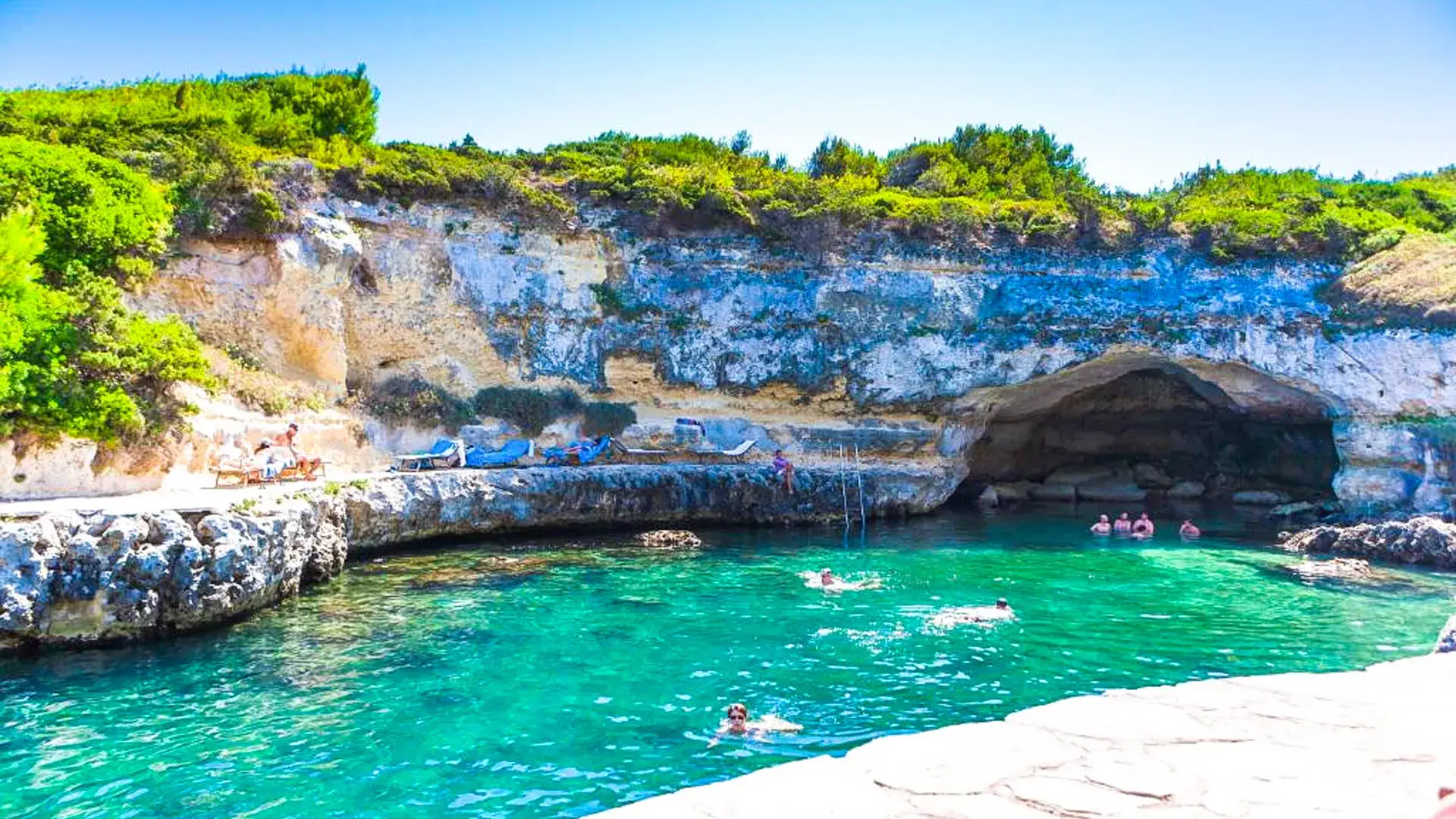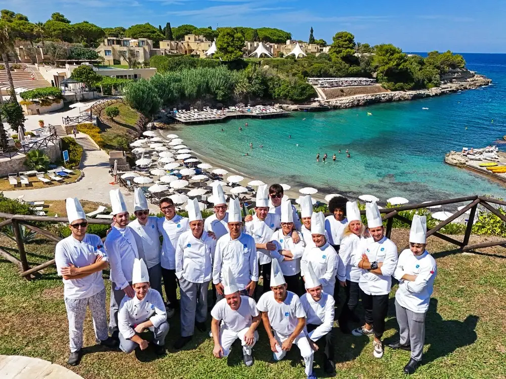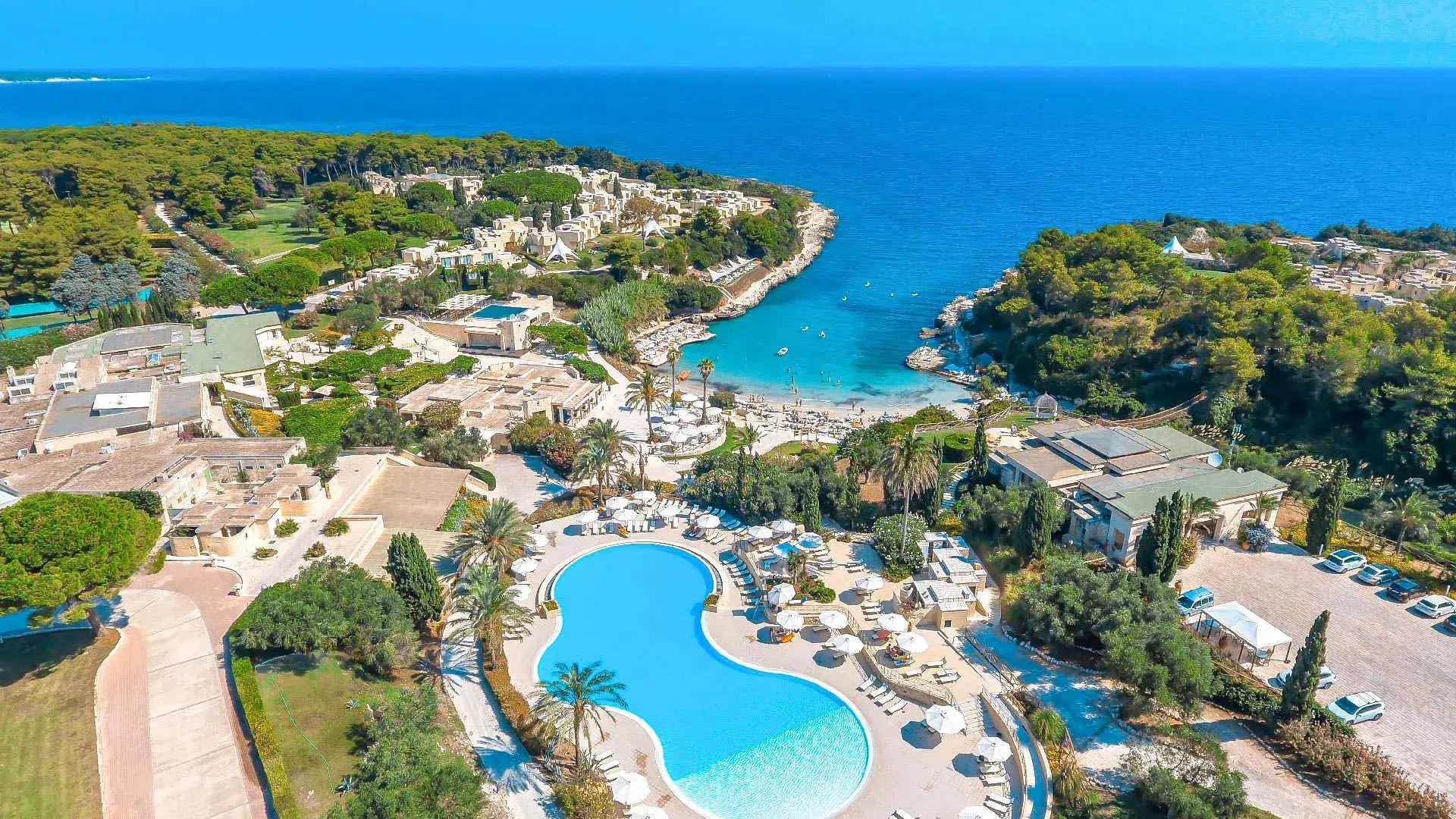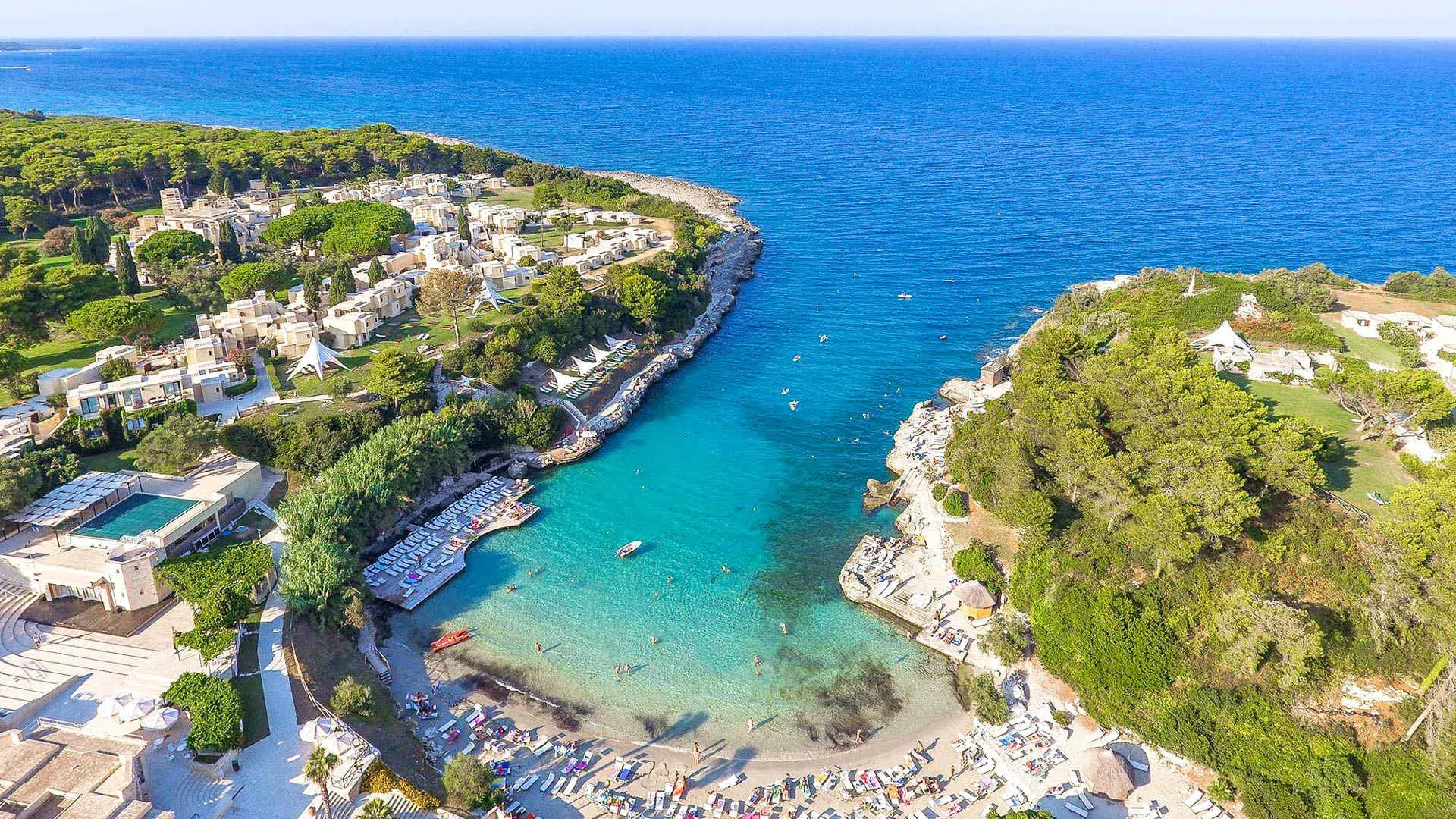 È affacciato su una splendida Baia tra acque cristalline, palme e cipressi che toccano il cielo, in una terra ricca di storia e cultura. Una seconda caletta denominata Rada della Caréula, riservata, quasi intima, formata da piccole insenature e da una grotta (Grotta delle Pupe) è una piscina naturale dove la bellezza di questo angolo di Puglia raggiunge la sua apoteosi.