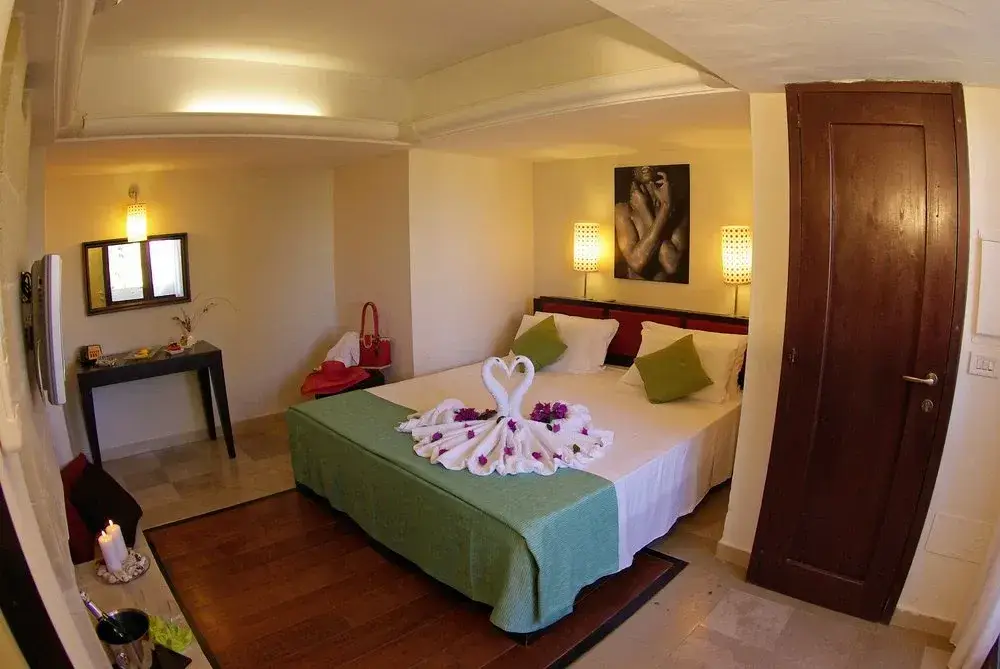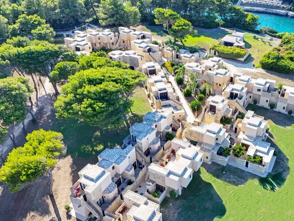 In “pietra Leccese” sono costruite le 424 camere in stile mediterraneo, tutte al piano terra o al primo piano. Le stesse sono circondate dal rilassante parco. Sono dislocati in 2 “quartieri” affacciati sulla baia principale e sulla piazza del Resort.