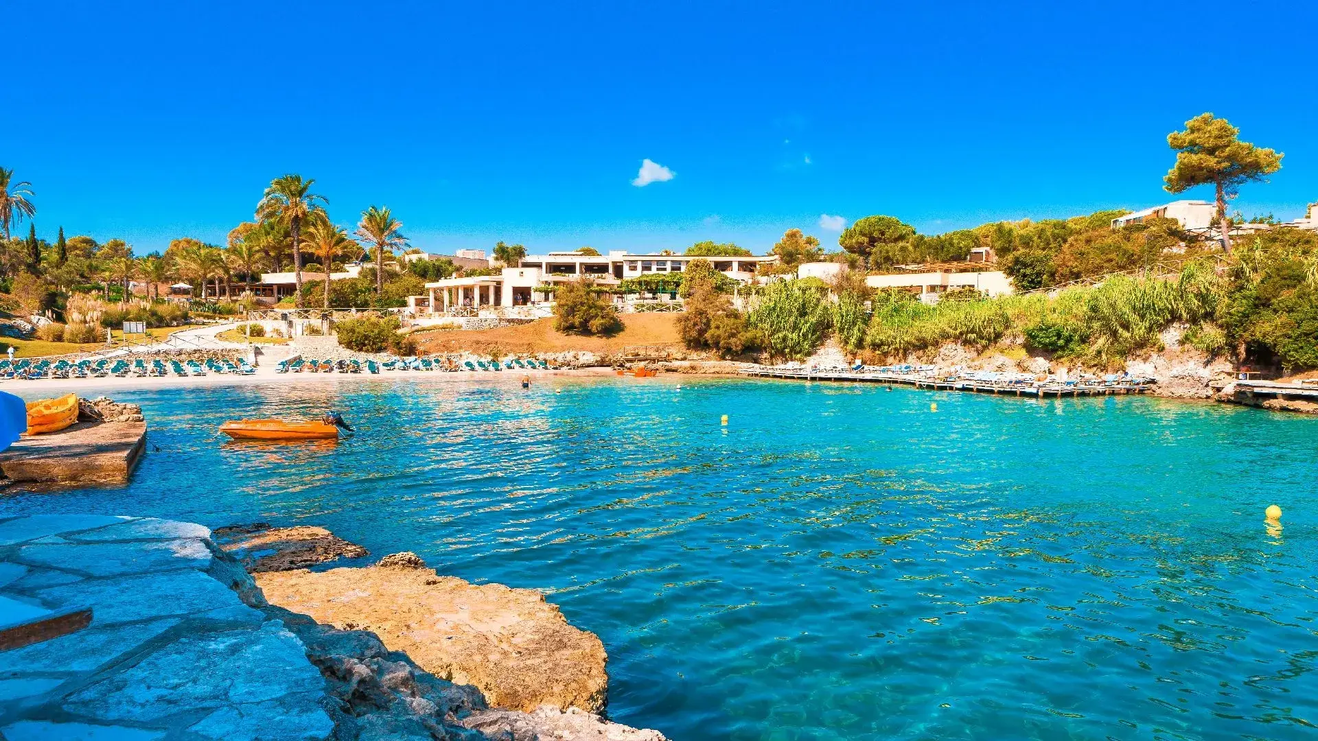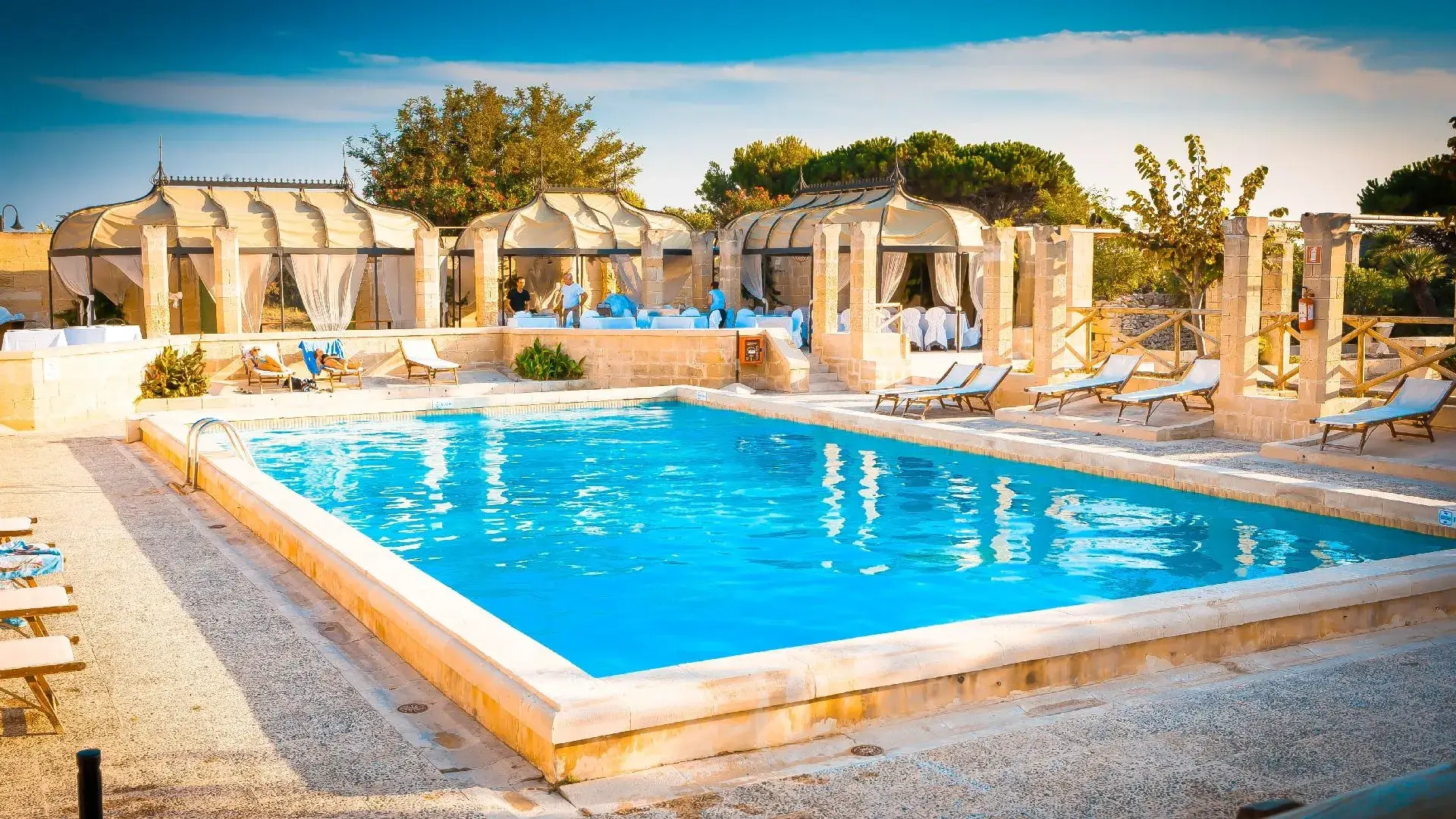 - Servizio Spiaggia*: lettini su terrazzamenti laterali. A disposizione degli ospiti anche la meravigliosa caletta “la Cricca” (Rada della Caréula), una bellissima piscina naturale con grotta detta "delle Pupe", attrezzata con lettini sui terrazzamenti, sulla piattaforma in legno e sul prato sovrastante. Inoltre l'area "Le Vele", con terrazzamenti e prato, attrezzata con lettini.
