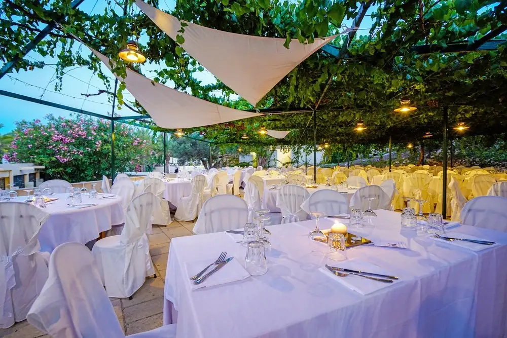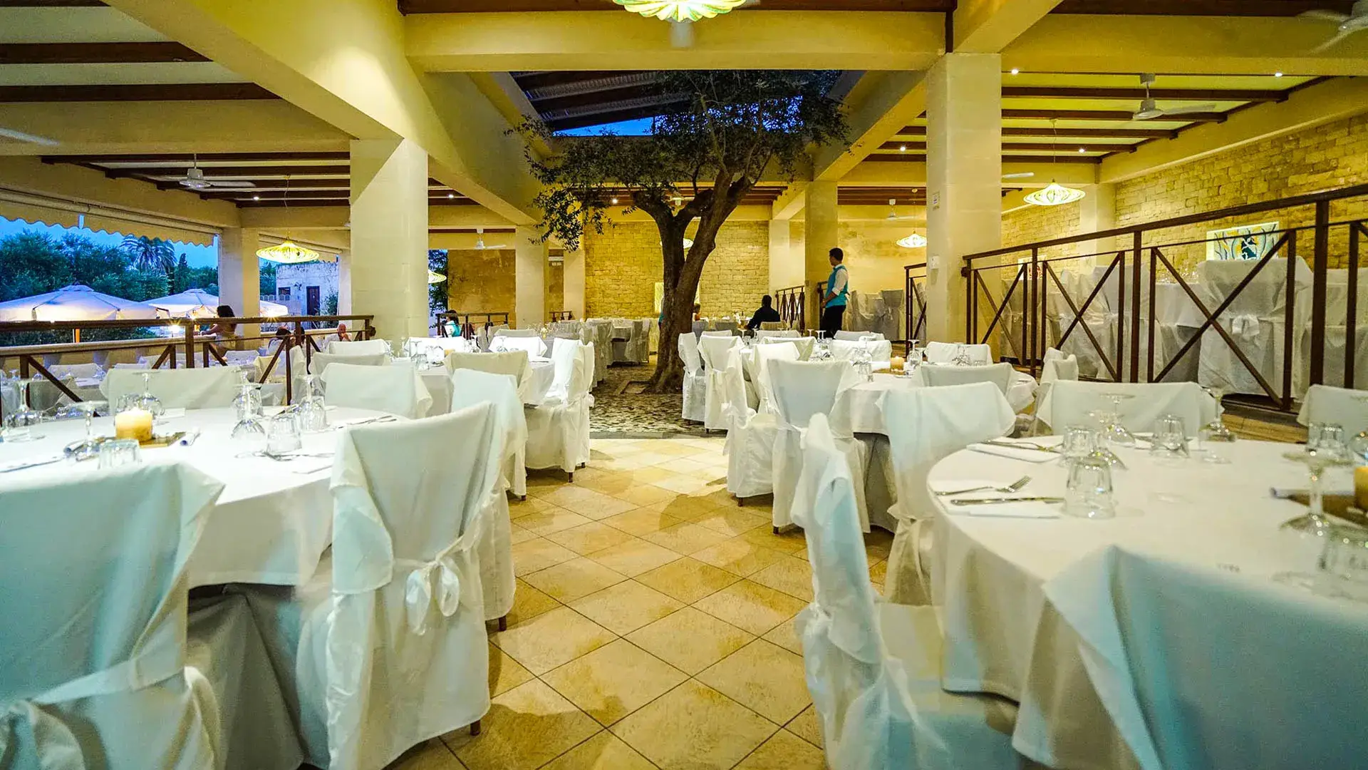 Domina il Resort e la baia ed è costituito da quattro ambienti su due livelli: la sala interna “La Veranda”, “La Terrazza” con vista mozzafiato sulla caletta principale e “Il Pergolato” con tavoli da 8 a riempimento (anche in compagnia di altri ospiti) o tavoli da 2 a 5 persone (per numeri maggiori richiedere direttamente in loco), ed “Il Labirinto”, arredato con tavoli e panche di pietra da 2 a 5 posti. Piatti di cucina locale e internazionale, friggitoria e pizzeria, oltre al ricco buffet di antipasti, contorni e dolci, sono a disposizione degli ospiti.